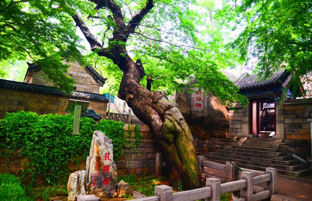 太清游览区内一棵虬枝盘曲的古树叫龙头榆,已有1100余年的树龄。它学名糙叶树,是一种榆科植物,一般生长在江浙一带,属于南方树种。因为树形长得像龙头,故称龙头榆。这棵树是唐朝末年由来自河南的一位高道李哲玄亲手栽植的,李哲玄是崂山历史上第一位被皇帝敕封为“真人”的道士,活了115岁。因为龙头榆植于唐代,所以又名唐榆。当地人有个说法,叫“摸摸老龙头,一辈子不发愁”。
