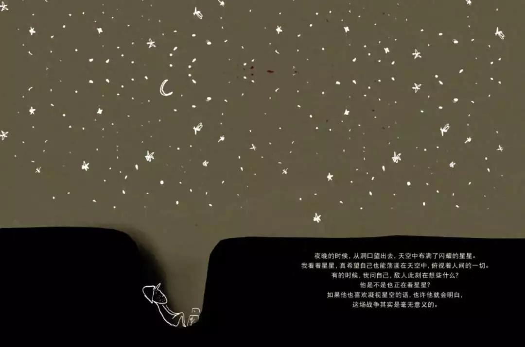 战争开始了,两个敌对的士兵躲在各自的壕沟里不时朝对方射击,他们疲惫困倦,不知所措,却都在想象对方是一个残忍、没有人性的野兽……战争持续了好久,在一个没有月亮的晚上,士兵爬出壕沟准备去杀死对方,但他找到了一个空无一人的洞穴,洞穴里的一切都似曾相识,有家人的照片和一本关于敌人的手册,这一切都将改变他对敌人的认识……