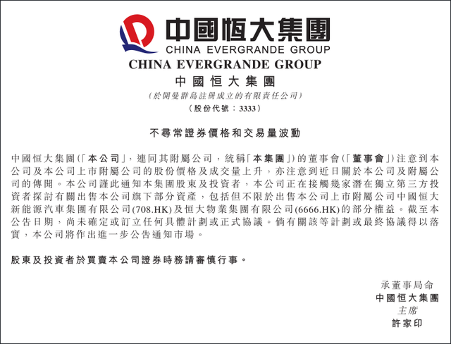 除了财务方面的压力,许家印卸任恒大地产董事长职务、许家印的好友、华人置业主席刘銮雄及其妻子陈凯韵,就于近半个月内大举抛售恒大股份。刘銮雄夫妇在9月10日减持中国恒大2443.6万股,套现8751万港元。
